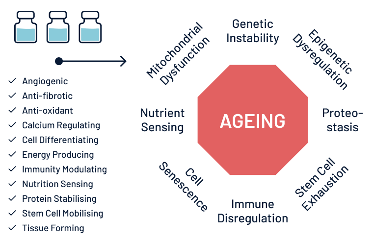 Our vision is that they also provide the means to boost cell & tissue regeneration for healthy ageing via the factors made and released by primal cells.