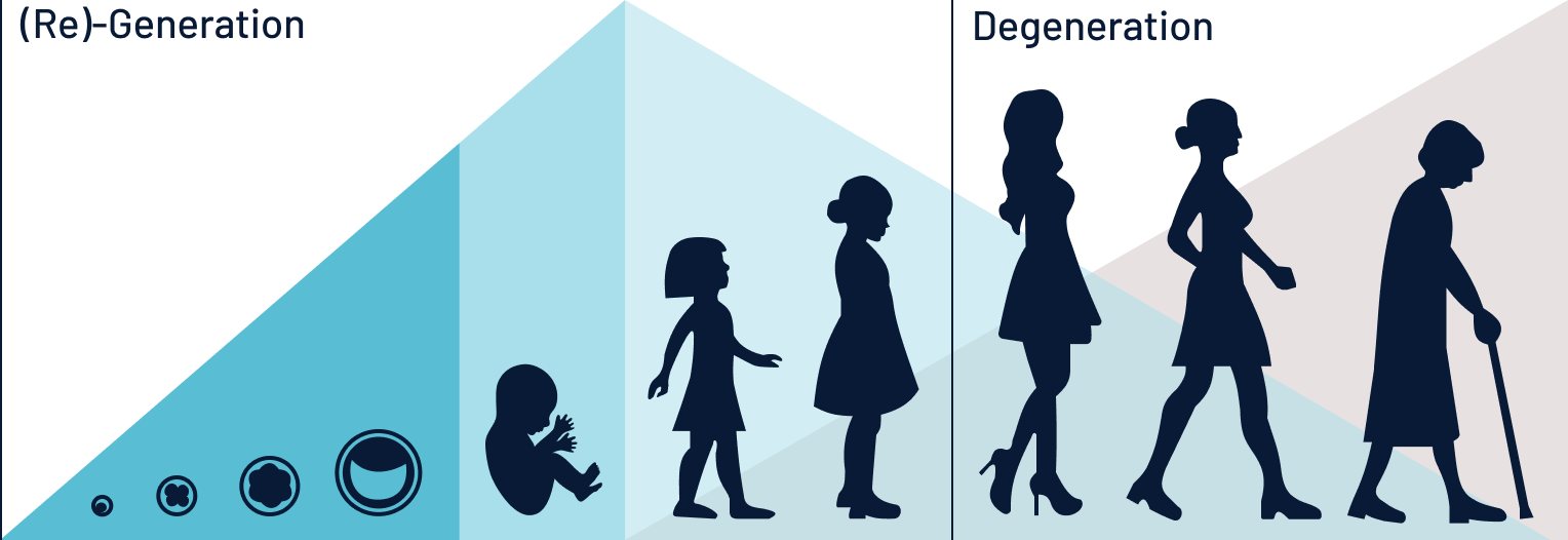 We lose the capacity to heal as we age. This manifests as chronic inflammation, loss of organ function and cancer. This is brought on by many factors internal and external to our cells that affect their growth and function. Potency for healing is greatest in the cells of our primal self when our tissues are developing.